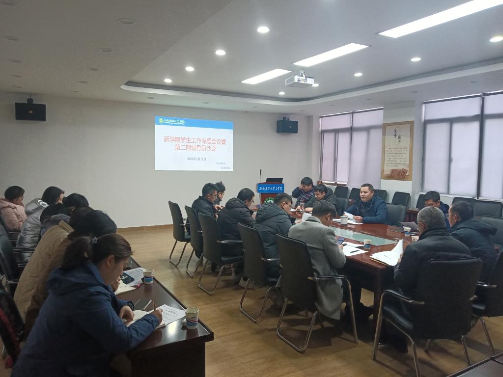 本网讯 2月16日下午,工学院在学院二楼会议室召开新学期学生工作专题会议暨第二期辅导员沙龙。会议由院党委副书记、副院长张国学主持,学院全体专兼职辅导员参加了本次会议。