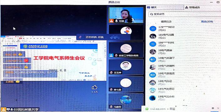 电气系召开全系师生疫情防控防疫专题会,全体教师、专兼职辅导员和学生相聚云端。院党委书记任琪和系主任周平分别就疫情防控相关政策要求、学院包保工作责任制、工学院疫情防控志愿者招募工作等给师生们做了深入浅出的解读。会议强调,电气系师生要从讲政治的高度严格遵守各项疫情防控要求,做到知敬畏、守底线;要科学上网、文明上网,做到不信谣、不传谣;要合理安排学习和生活,相互鼓励,相互给力,形成和谐的院风班风。全系教职工要有仁爱之心,要坚持以学生为中心,真正地做到围绕学生,关照学生,服务学生,守好课堂主阵地的同时也要积极帮助学生解决学习、考研、就业、生活等方面的实际问题。