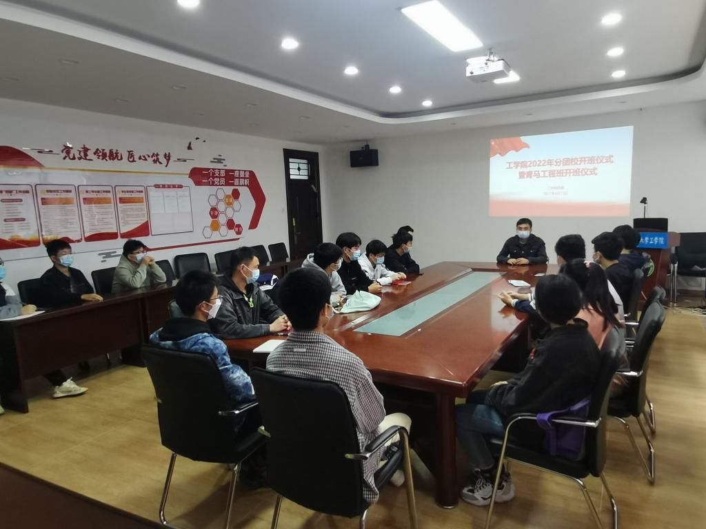 本网讯 为深入学习贯彻习近平新时代中国特色社会主义思想和党的十九大精神,贯彻 “学党史、强信念、跟党走”的思想,4月15日中午,工学院在三教学院会议室召开2022年“青马班”暨分团校开班仪式,仪式由院团委老师主持,院青马班学员和分团校学员参加。