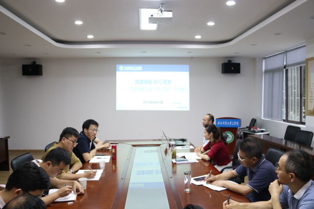 本网讯 为深入开展“党支部建年”活动,切实提高基层党务工作者的业务素质和工作能力,6月27日下午,工学院在学院会议室举办了以“夯实党建基础 激发群雁活力”为主题的第三期“匠心筑梦”工作坊交流研讨会,合肥工业大学仪器科学与光电工程学院党委书记钟军在交流研讨中做专题辅导培训。院班子成员、党委委员、党支部书记及支委、系(部、中心)主任参加,会议由学院党委书记任琪主持。