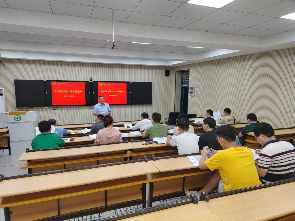 本网讯 8月25日下午,工学院召开新学期学生工作专题会,全体专兼职辅导员参加会议。院党委副书记、纪委书记、副院长张国学主持会议。