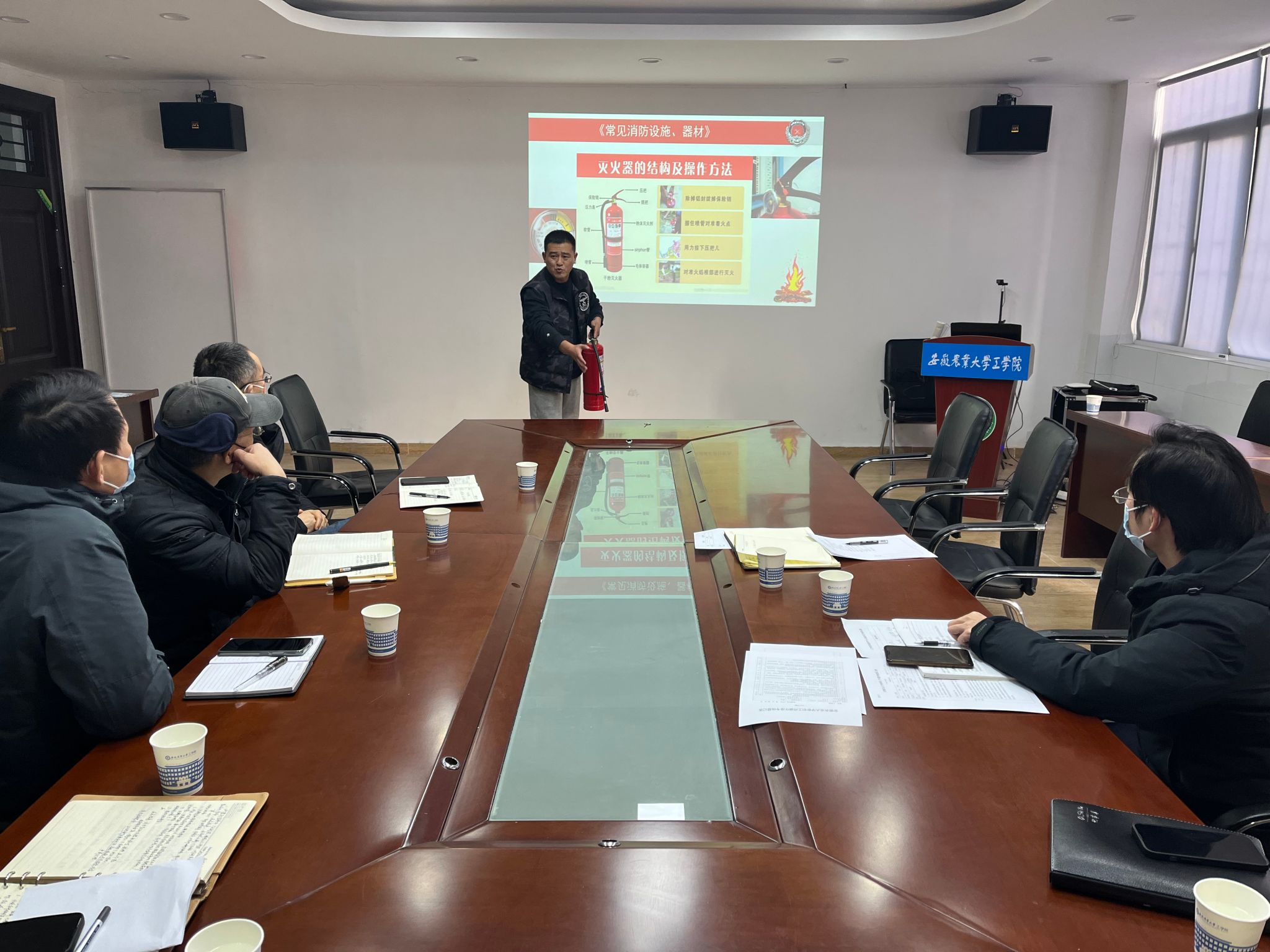 此次培训以消防安全典型事故案例为切入点,全面系统的向参加培训的老师们讲解并分析了火灾事故的危害和引发火灾事故的原因。通过结合学院实际情况,邵家伟从实验室、办公室和学生宿舍的常见火灾隐患问题着手,对如何防范化解火灾事故、主动消除火灾隐患以及如何加强消防安全管理等进行了专题培训。最后,培训现场还对干粉灭火器、灭火毯、室内消火栓的使用方法、初期火灾的应急处置措施、灭火过程中自我保护的注意事项等方面进行了详细讲授。