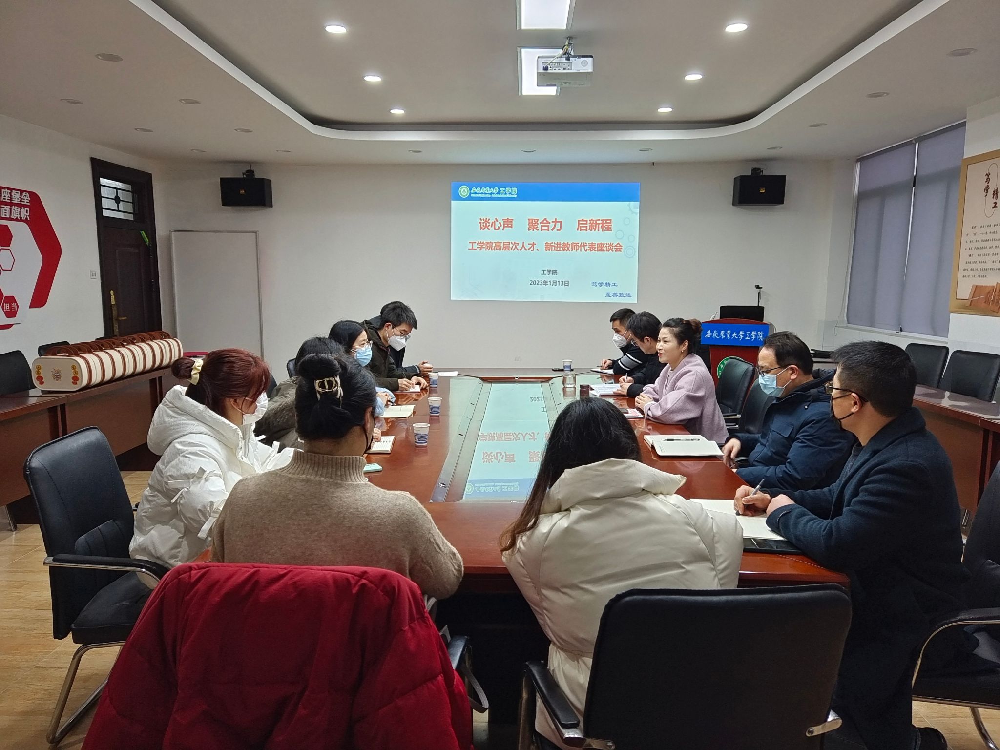 本网讯 1月13日下午,工学院工会在三教二楼门厅会议室召开高层次人才、新进教师代表座谈会。工学院党政班子成员及学院近两年引进的高层次人才和新进教师代表参加了会议。