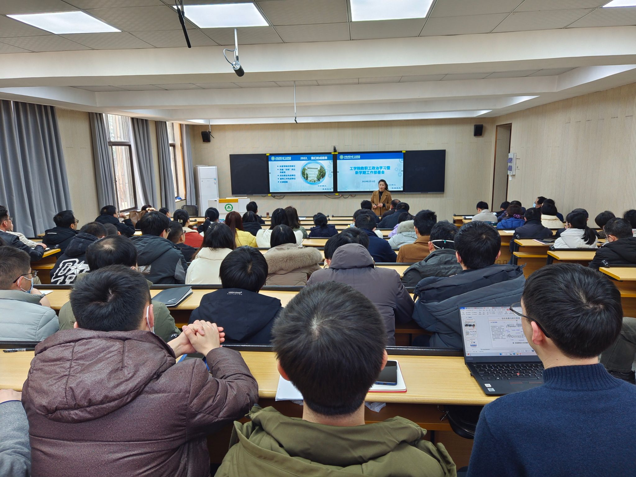 2月15日下午,工学院在三教101室召开新学期全体教职工大会,组织全院教师专题学习《中共中央 国务院关于做好2023年全面推进乡村振兴重点工作的意见》,中央、省委农村工作会议精神及学校相关工作部署和安排等。会议由院党委书记任琪主持。