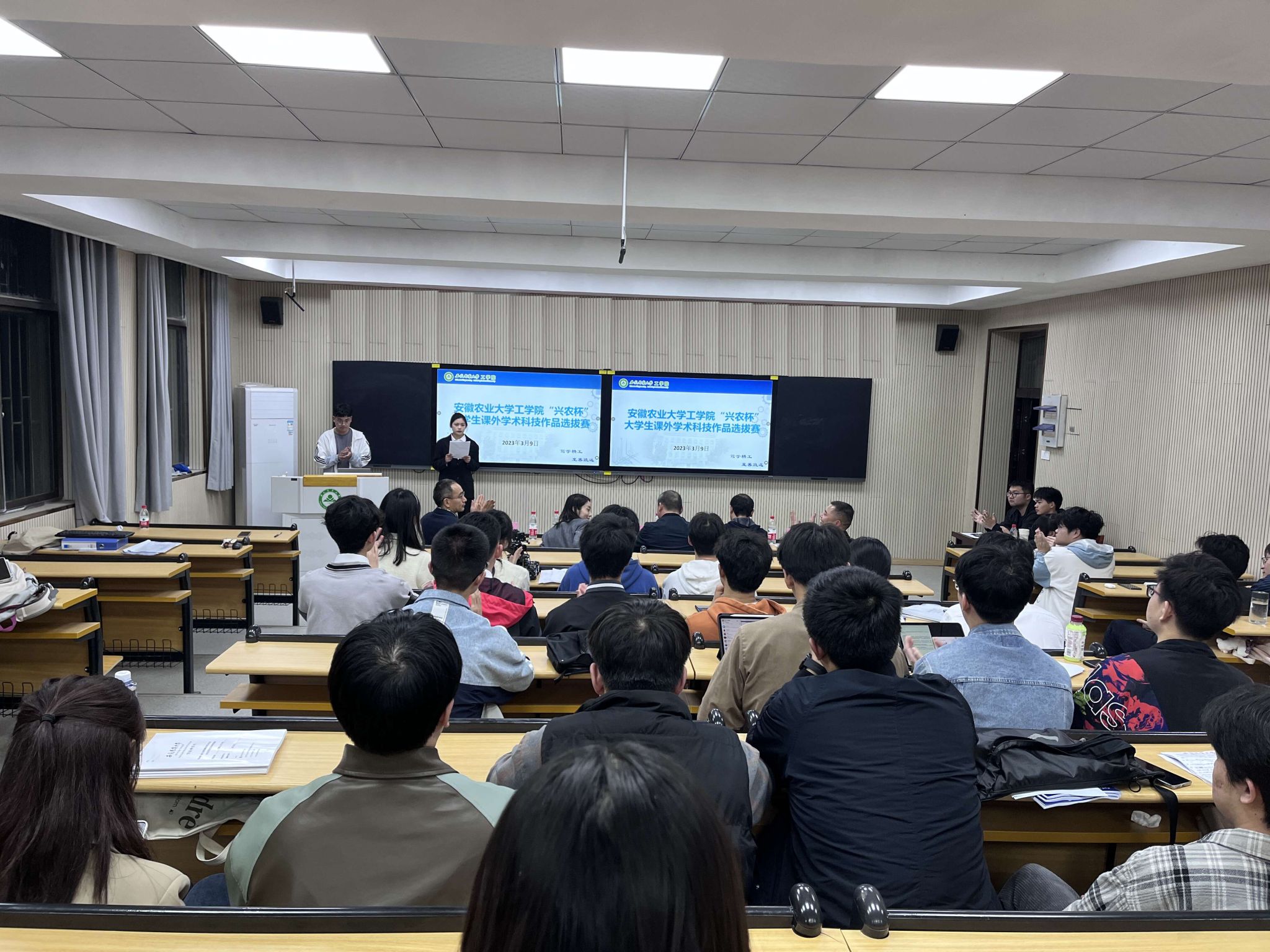 本网讯 3月9日晚上,工学院举办“兴农杯”大学生课外学术科技作品竞赛,校创新创业学院常务副院长徐斌、校人事处副处长孙福、校团委副书记武晓蓓、学院党委副书记张国学、副院长许良元担任评委。