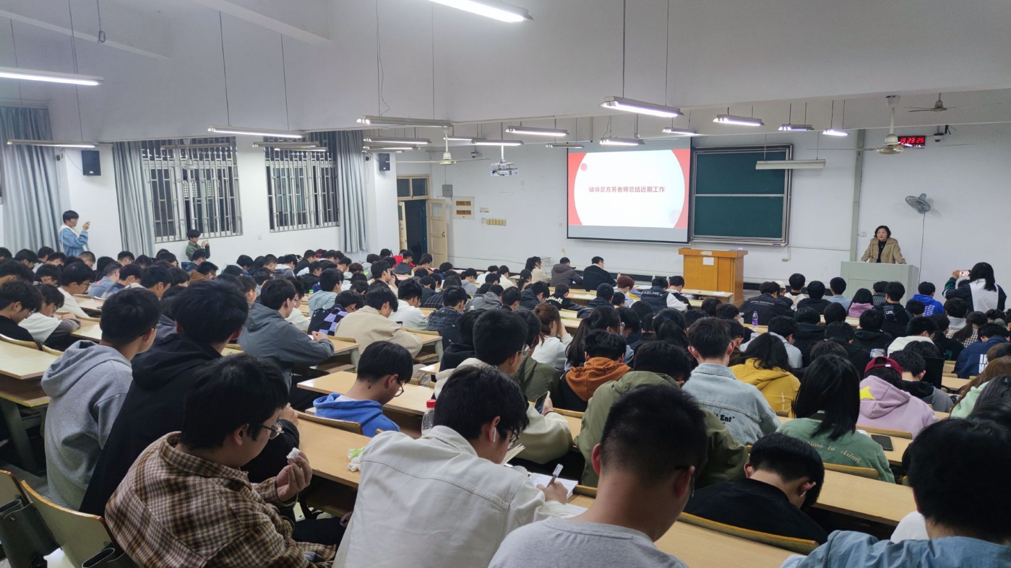 各位选手答辩结束,辅导员方芳老师对积极组织、参与专业活动的同学进行了表扬和肯定。她指出,个人的努力拼搏成就更好的自己,大家共同的努力方可铸就集体的辉煌,希望同学们多参加集体活动,多为同学服务,多为集体贡献力量,因为是一家人,所以要拧成一条绳,相互帮助,携手共进,团结奋斗向未来。