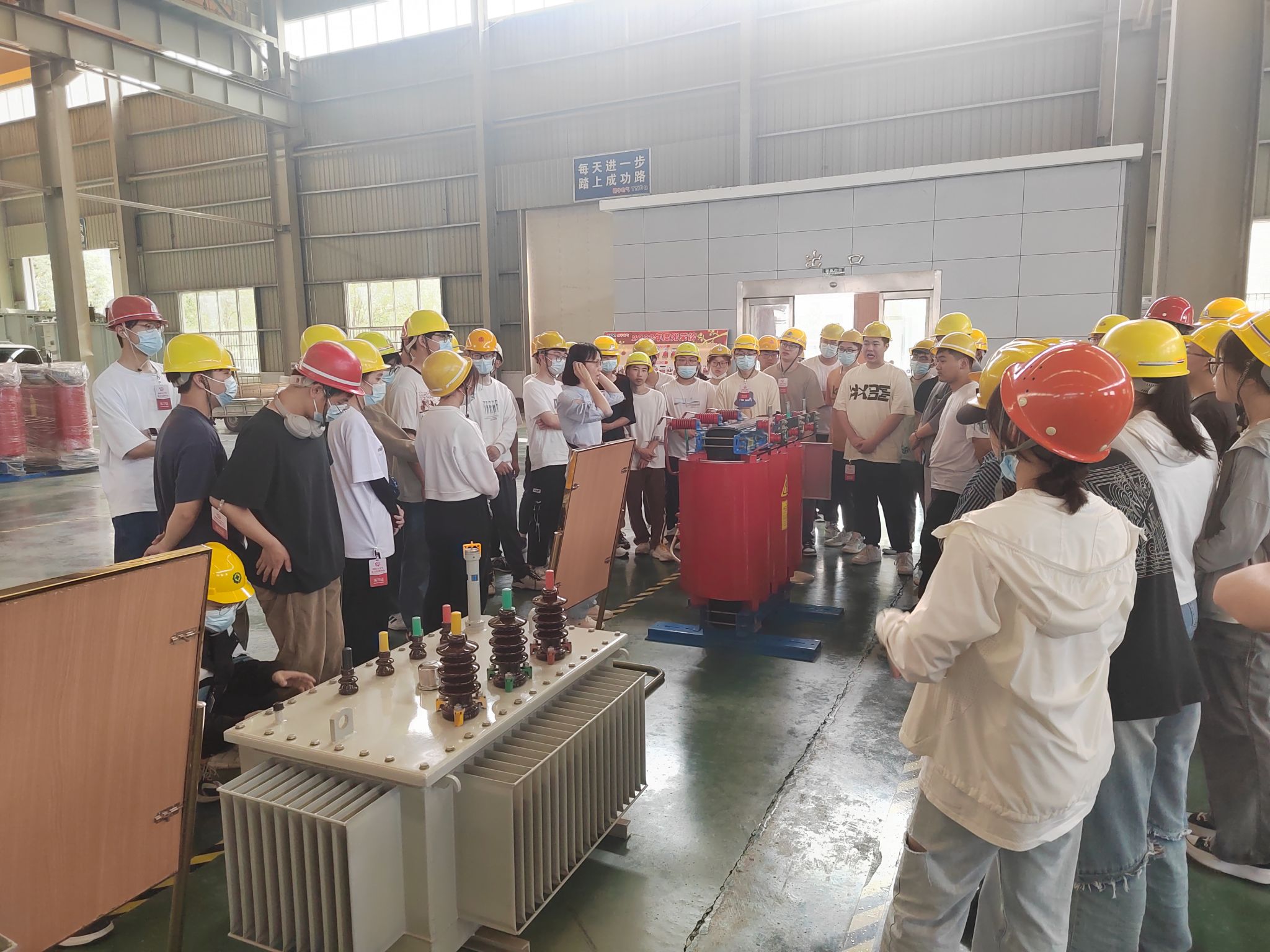 本次实习前往河南铜牛变压器有限公司、洛阳龙羽电气设备有限公司、洛阳市锐创电气设备有限公司、首阳山热电厂等多家单位开展,包括实习动员、安全教育、理论培训、入厂参观、动手实操和实习总结交流等多个环节。学生深入生产一线,全面了解特种变压器、电力变压器、高低压成套配电设备、电气设备制造企业车间布置、生产过程、工艺流程、产品类别及新能源发电等行业发展状况,并与现场工作人员进行了交流。