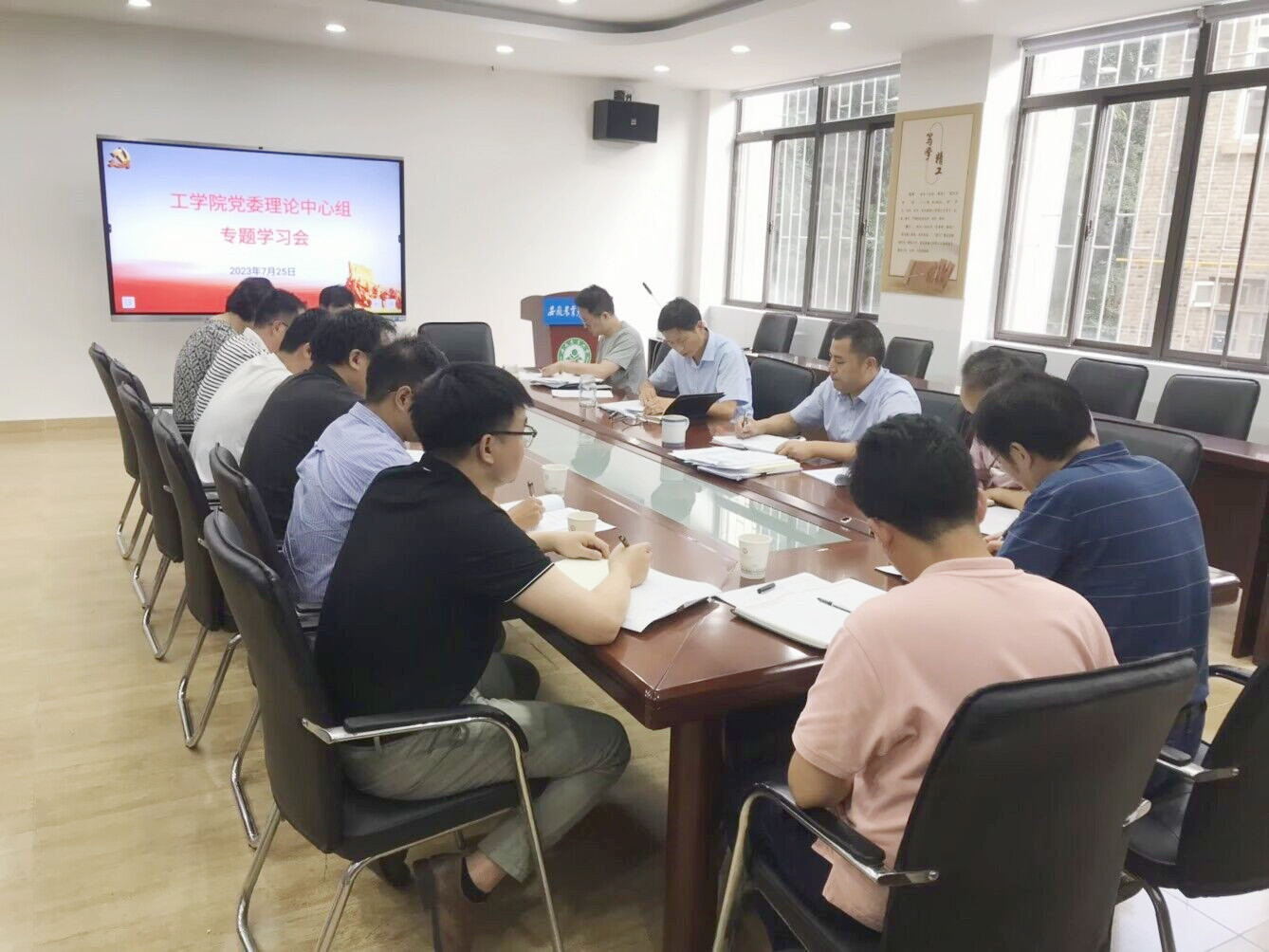 本网讯 7月25日下午,工学院召开党委中心组学习会,学习习近平总书记最新重要讲话和指示精神,传达学习学校党委理论学习中心组(扩大)学习会暨专项行动动员部署会精神,部署学院“思想大解放、能力大提升、作风大转变、任务大落实”工作。