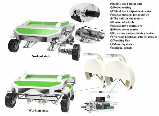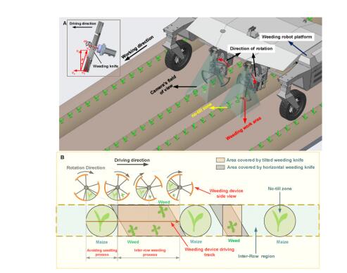 关于行内除草机器人的研究,文中基于深度学习开发一种新的智能行内机械除草机器人系统,通过创立耕除标准建立了保护和除草区域以降低作物受伤率,在垄作条件下使用楔形除草刀重复实验,最终的除草率为85.91%,伤苗率为1.17%。该研究结果证明了所提出的行内除草方法的可行性。