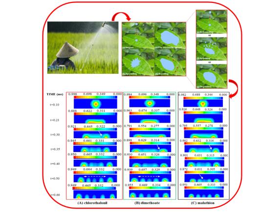 分析面向农药使用的微尺度固液叶面流动和失稳的行为,明晰了不同喷施工况参数下,农药雾滴微抖振舒茶早叶面上碰振-弹跳/沉积行为的演化规律。