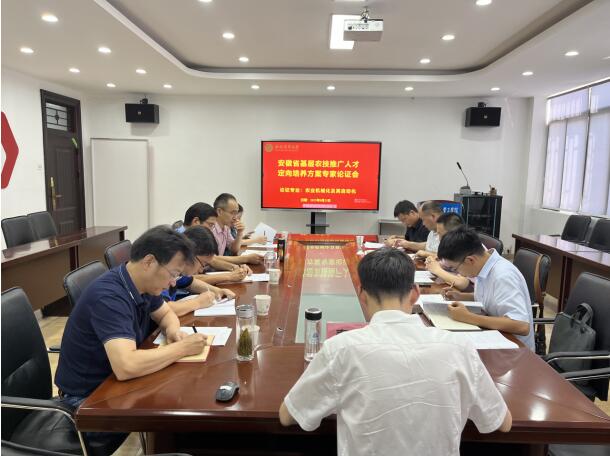 本网讯 为扎实做好基层农技推广人才定向培养工作,保证人才培养质量,根据《安徽省基层农技推广人才定向培养工作方案》等文件要求,8月23日下午,学院在三教二楼门厅会议室召开2023级农业机械化及其自动化专业定向人才培养方案专家论证会。合肥工业大学黄康教授、安徽科技学院乔印虎教授、安徽省农机推广总站蔡海涛高级工程师、怀远县农机化技术推广中心胡红磊高级工程师应邀参会。学院副院长朱德泉(主持工作)和相关专业负责人参加会议。会议由教学副院长许良元主持。