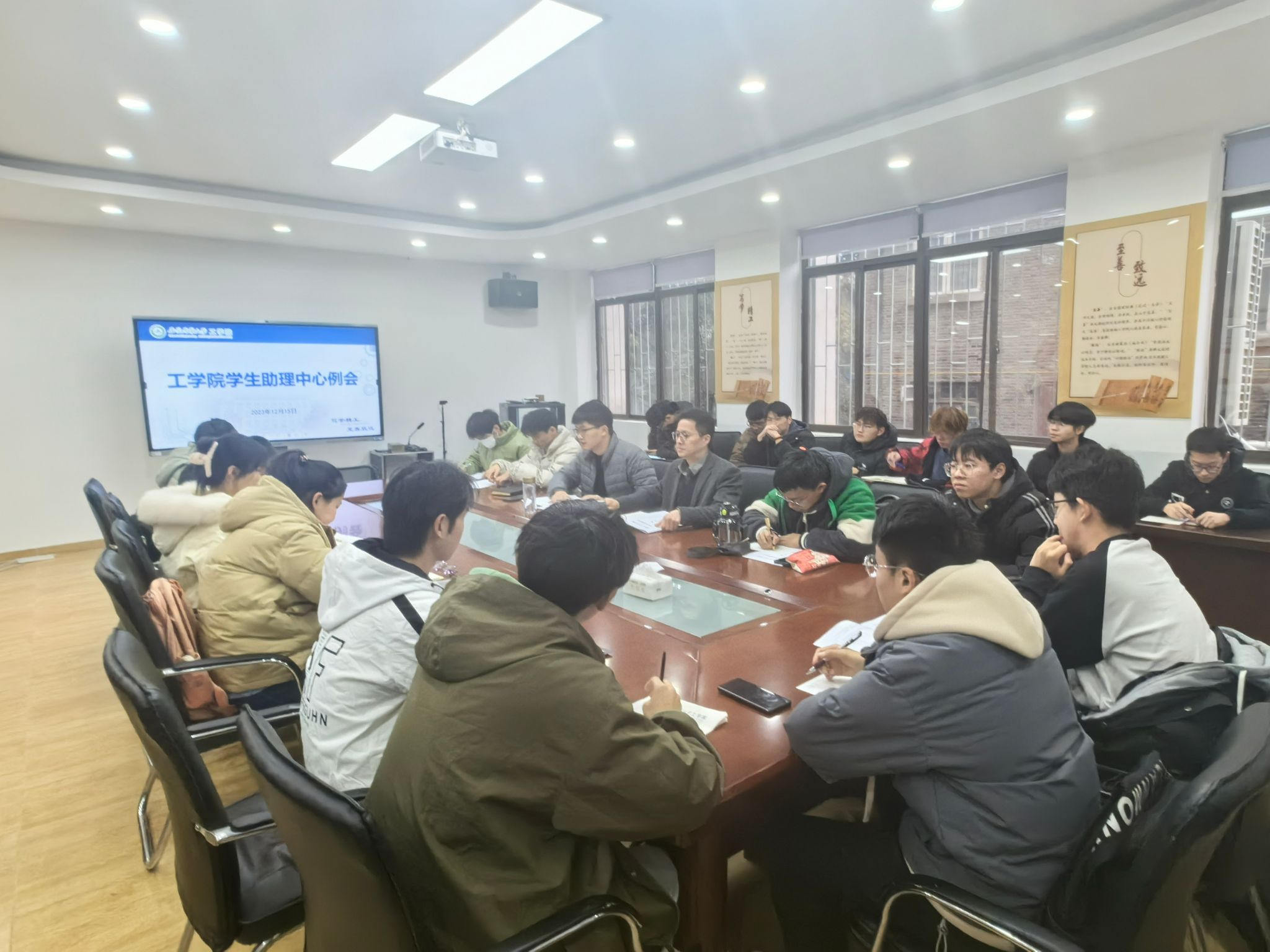 本网讯 为进一步加强学生助理中心管理工作,明确中心工作职责、提升学生综合能力,12月15日中午,工学院召开学生助理中心工作例会,院党委副书记张璐,学生助理中心负责教师周国安及中心全体学生助理参加会议。
