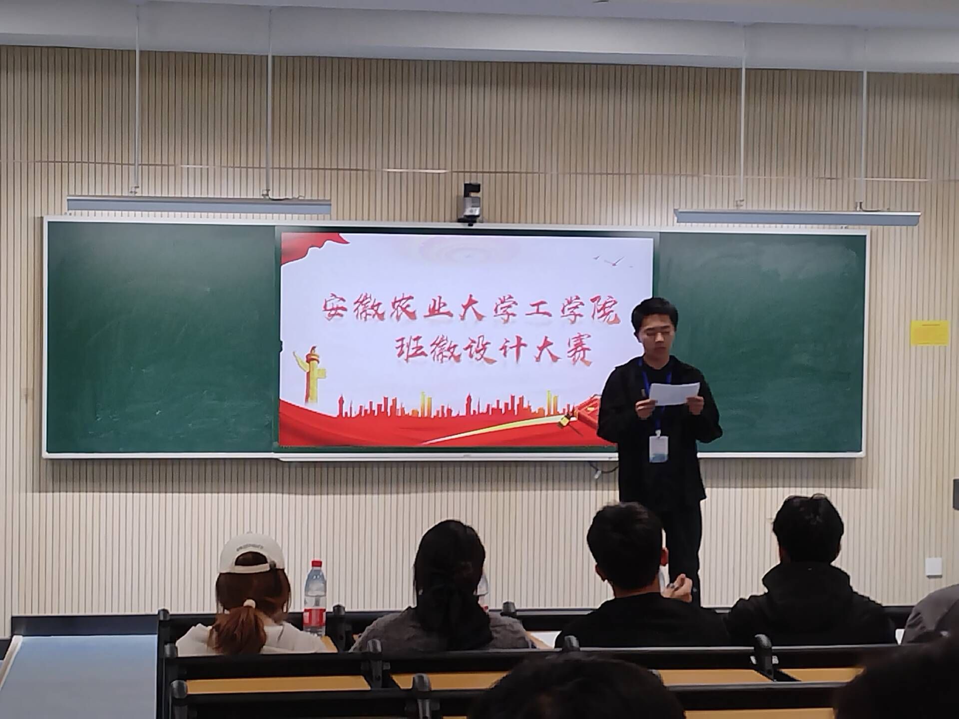 本网讯 4月12日晚7点,工学院在三教102举办“徽韵璀璨,训铸风采”班徽设计大赛决赛。