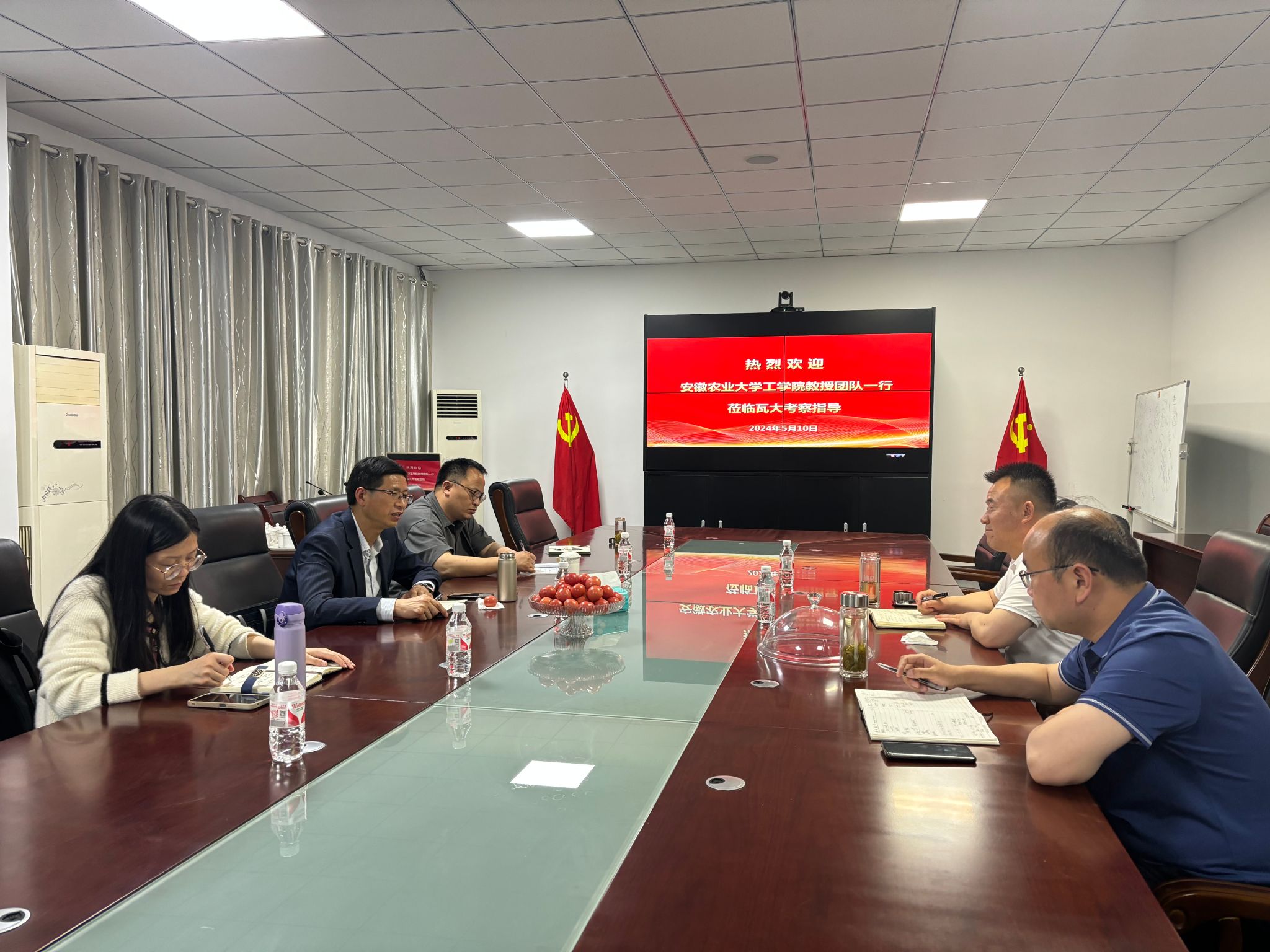 下午,学院一行来到安徽瓦大现代农业科技有限公司,并在公司项目总监亓文明的带领下参观了瓦大番茄谷。朱德泉表示,单一鲜食番茄种植必须依靠科技和人才,后期将加大校企合作,进一步服务好现代农业发展。公司总经理刘志才详细介绍了瓦大的发展历程和近年来取得的发展成就,并向学校一直以来对企业发展的关心和支持表示感谢。最后,校企双方就水肥设施系统、信息化技术集成、病虫防控、乡村文旅和番茄全产业链的发展交换了意见,同时就如何共同做好高素质人才培养、高质量学生就业、高水平科研创新等方面进行了充分地讨论。(文/图/程龙 编辑/陈鑫诚 审核/ 张璐 )