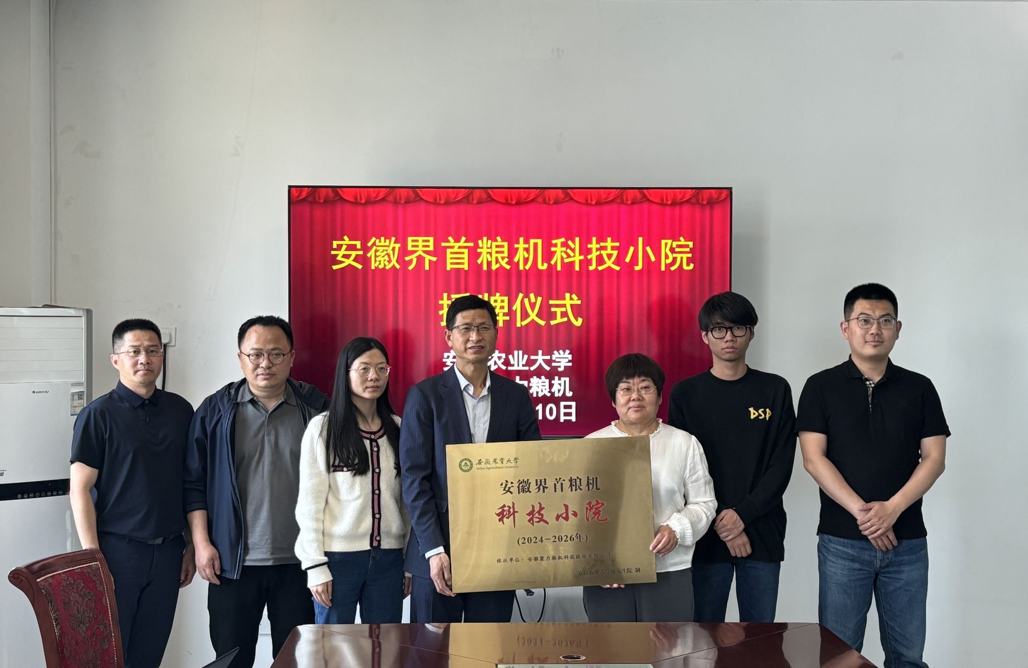 上午,朱德泉一行来到安徽聚力粮机科技股份有限公司,董事长曹静对学院各位领导、老师的到来表示热烈欢迎并组织召开座谈。座谈会上,朱德泉重点介绍了工学院的发展历程、人才培养、科研平台建设和科研成果创新等情况,并对校企合作取得的成果表示了肯定。曹静对我院长期以来为聚力粮机的发展提供的大力支持深表感谢,并详细介绍了企业的发展历程、业务范围及技术需求等,双方就产业链、平台共建、人才联合培养等方面交换了意见。最后,双方为校企共建的安徽界首粮机科技小院正式授牌。
