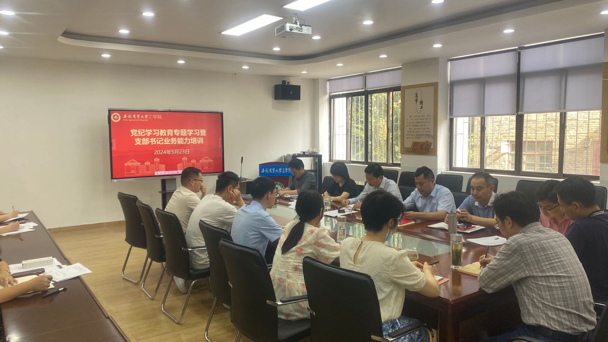 5月23日下午,学院召开党纪学习教育专题学习暨党支部书记业务能力培训,院党委委员、党支部书记参加会议,学院党委书记张国学主持会议。