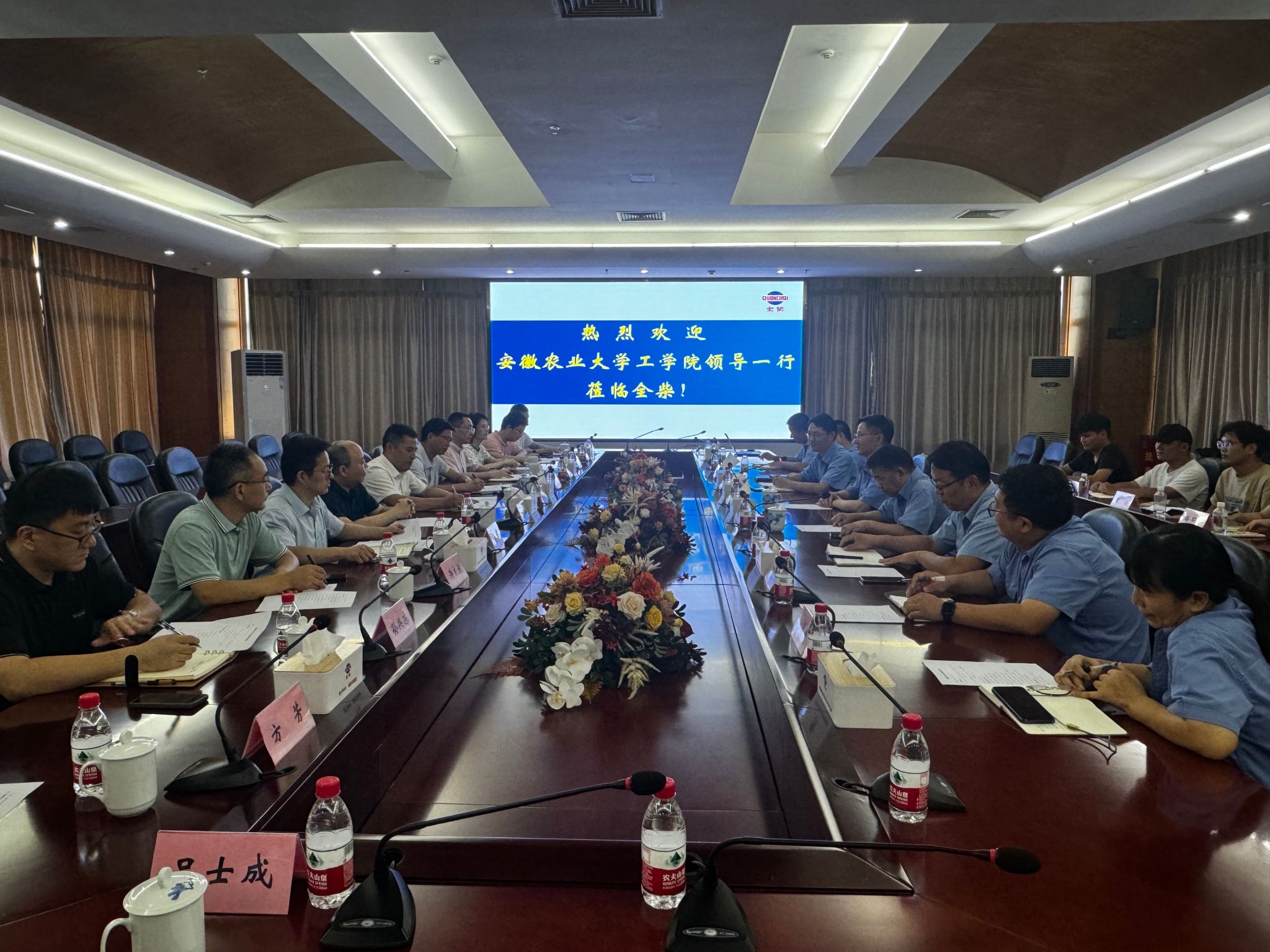 最后,学院一行来到安徽全柴集团有限公司,在全柴动力生产总监、制造工程部经理、2003届机械设计制造及其自动化专业校友唐来明的陪同下参观了生产车间、实验室、人才公寓,看望了在全柴工作的工学院校友并开展座谈。座谈会上,全柴动力总经理刘吉文、全柴集团副总经理、全柴动力监事会主席黄长文介绍了公司情况,对在全柴就职多年的安农大毕业生给予了高度评价,并希望学校能为企业高质量发展输送更多优秀毕业生。唐来明、刘克华、江邦霞三位校友深情回忆了在校期间的学习生活,分享了工作经历和感悟。新入职的5名2024届工学院毕业生汇报了入职以来的感受,并对母校老师的看望和关心表达了感激之情,大家纷纷表示无论身在何方,都会始终铭记母校老师们的教诲,矢志奋斗,努力成为有担当、有作为的新时代青年。会上,双方还就研究生联合培养、学生就业实习等方面进行了深入交流。(文/图 方芳 编辑/陈鑫诚 审核/吴冬梅)