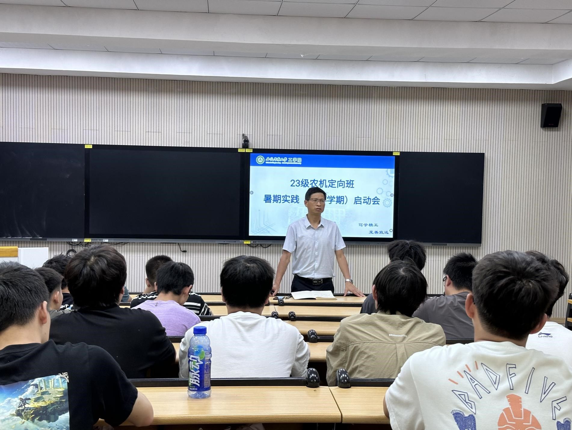 7月15日上午,农机定向班暑期跟岗实习动员会在三教101教室召开,工学院院长、23级农机定向班班主任朱德泉出席了会议并做动员讲话。朱德泉介绍了暑期跟岗实习的目的和意义,强调实习的组织纪律和安全事项,并勉励同学们要充分利用本次实践机会,在耕读实践中了解社情民意、在不同学科专业的知识体系间做到融会贯通,提升创新能力,并努力强化“用科学知识助力农业发展、以服务乡村振兴为己任”的服务意识。动员会由农机系副主任熊玮主持。