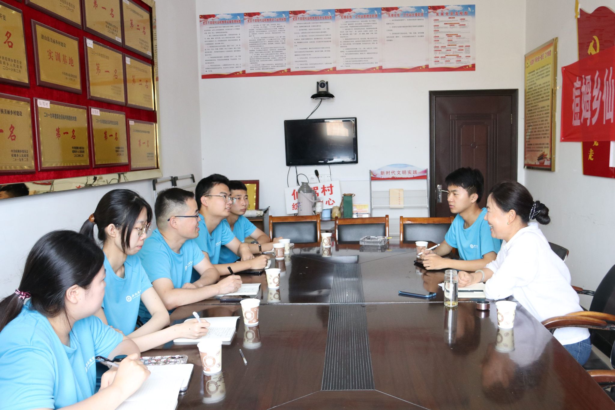 7月16日下午,按照既定计划,实践团来到痘姆乡政府,寻访了痘姆乡政府组织委员谢倩(原安徽农业大学茶与食品科技学院2013级优秀本科毕业生),倾听其扎根基层的青春奋斗故事。谢倩结合自身的求学路程和工作经历,诠释着一名基层工作者对社会的责任与担当。实践团成员们认真聆听,全程记录,收获满满。