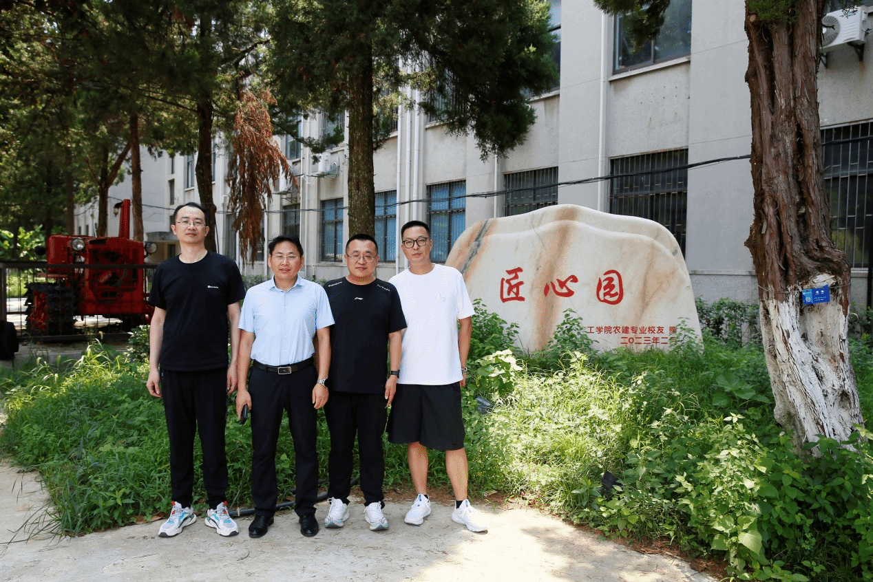 校友们在“匠心园”前合影留念,先后参观了教学楼、图书馆、运动场、宿舍等地。