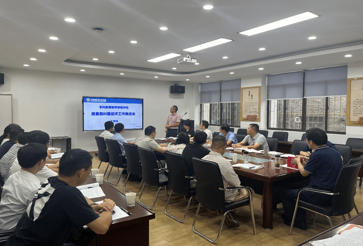 本网讯 为深入贯彻落实学校关于本科教育教学审核评估工作的部署和要求,进一步做好迎评工作,9月19日下午,学院在229会议室召开本科教育教学审核评估自查自纠暨迎评工作推进会。学院领导班子、党支部书记、系部(中心)主任参加会议。会议由院长朱德泉主持。