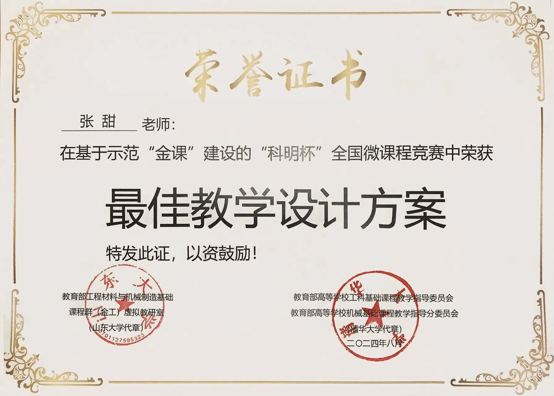 本网讯 近日,基于示范“金课”建设的“科明杯”微课程竞赛评审及资源建设研讨会落下帷幕。我院机电工程园教师张甜,荣获微课程竞赛一等奖和最佳教学设计方案奖。