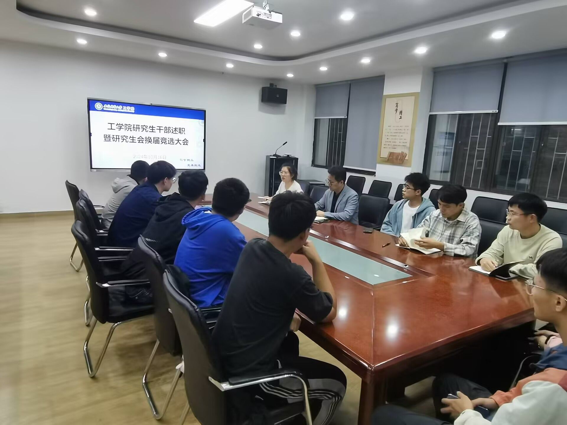 本网讯 10月16日下午,工学院在229会议室召开研究生干部述职暨研究生会换届竞选大会,学院党委副书记张璐、研究生日常管理老师、研究生会全体成员参加。