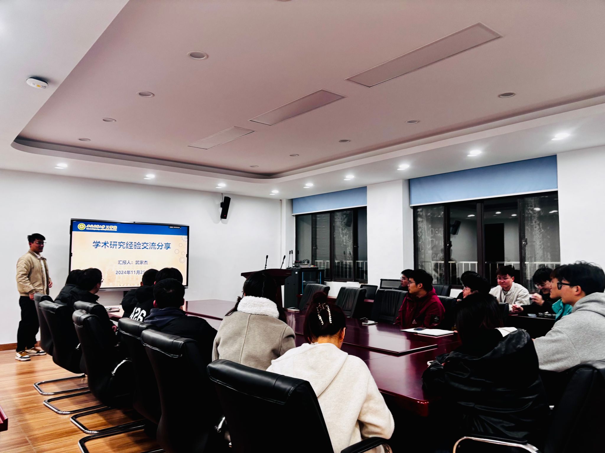 本网讯 11月25日,工学院研究生会在229会议室举办“匠研领航 朋辈砺行”研究生国奖经验分享交流会,活动邀请武家杰、汪宇、张齐三位2023—2024年度国家奖学金获得者作为分享嘉宾,2024级部分研究生参加。