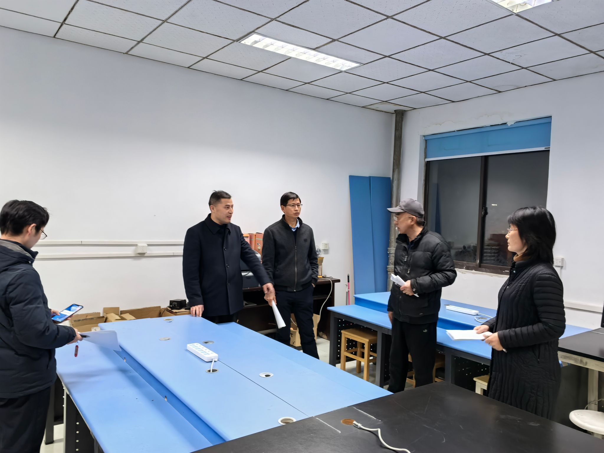 实验中心相关负责人参加检查工作。(文图/周国安 编辑/周国安 审核/吴冬梅)