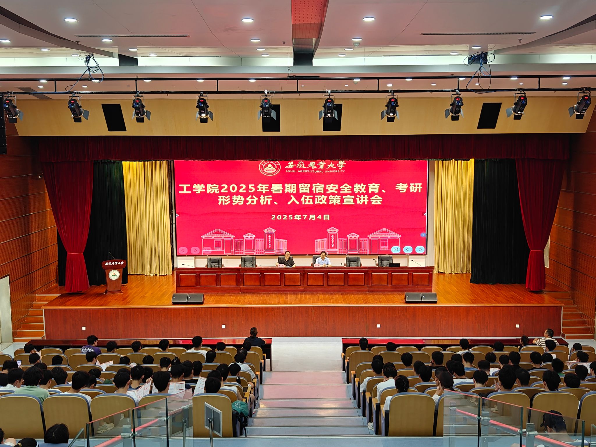 本网讯 7月4日下午,工学院在校图书馆第一报告厅召开2025年暑期留宿安全教育、考研形势分析及征兵政策宣讲会。学院副院长杨洋、留宿学生辅导员及全体暑期留宿学生参会,学院党委副书记、纪委书记张璐主持会议。
