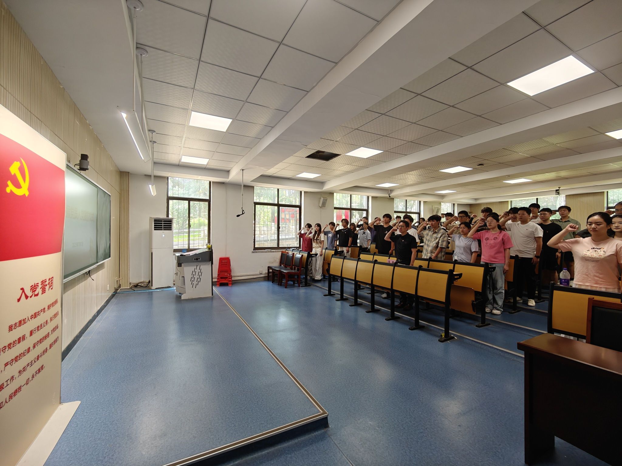 本网讯 7月1日中午,工学院于101智慧教室举办2025年上半年新发展党员入党宣誓仪式。院党委副书记张璐出席会议,2025年上半年新发展党员、各支部党员代表参加会议,仪式由电气学生党支部书记代梦蝶主持。
