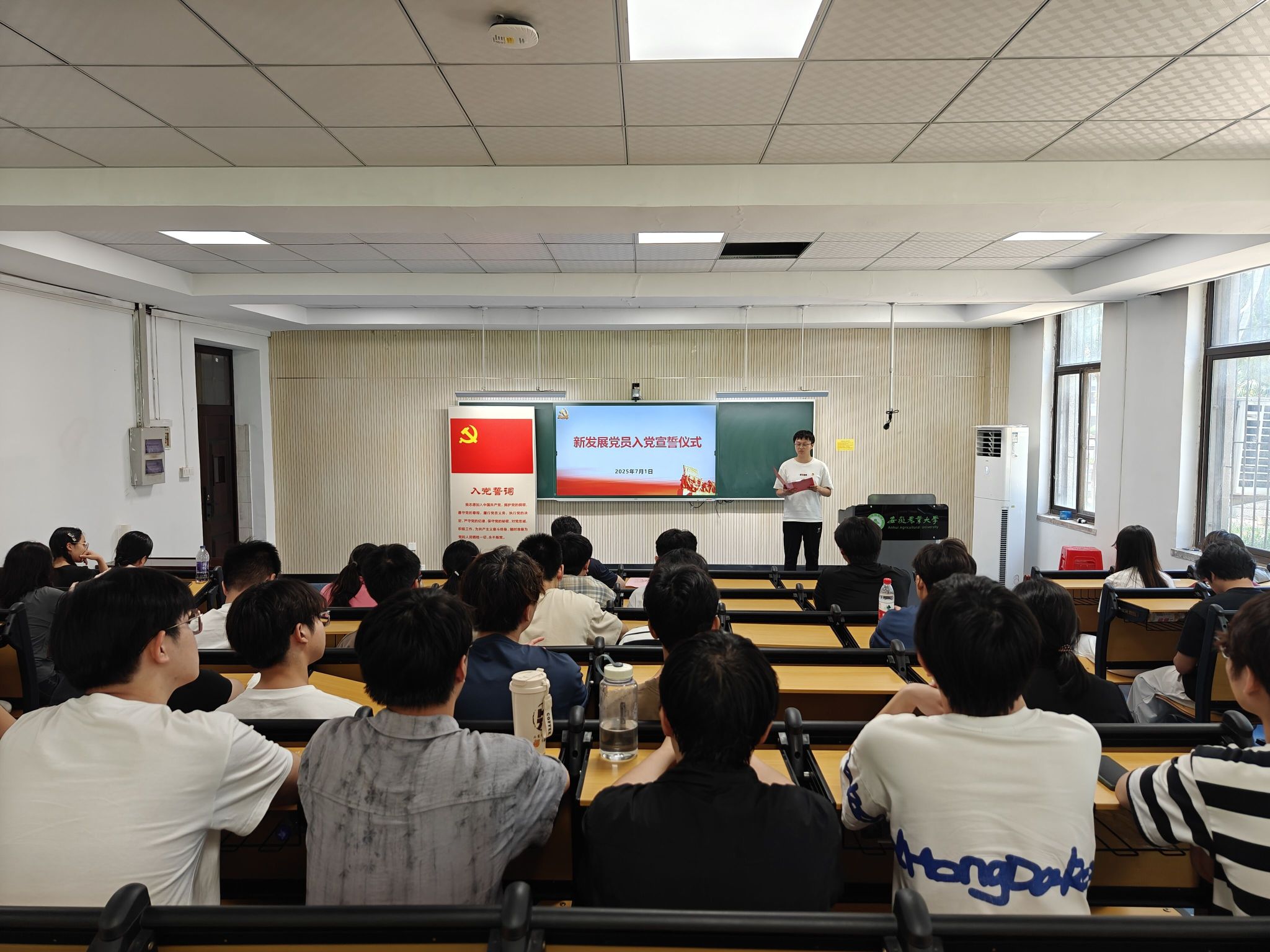 张璐向新加入党组织的大学生党员致以诚挚祝贺,并围绕新时代青年党员的成长路径提出四点期望,一要深学党的创新理论,在思政课堂、红色实践和日常学习中筑牢理想信念之基;二要践行服务宗旨,在学业帮扶、校园建设、社区服务中发挥先锋作用;三要严守纪律规矩,在实验室安全、学术诚信、网络言行中树牢底线意识;四要勇攀创新高峰,在科研攻关、社会实践、创业竞赛中展现担当作为。他强调,今天的入党宣誓是青春向党的新起点,希望新党员以"有理想、敢担当、能吃苦、肯奋斗"为成长坐标,将个人奋斗融入学院"新工科"建设,在参与乡村振兴、基层治理等社会实践中,用专业所学解决实际问题,用青春智慧赋能社会发展,让党员身份在知行合一中绽放光彩,为民族复兴伟业书写属于工科学子的时代答卷。