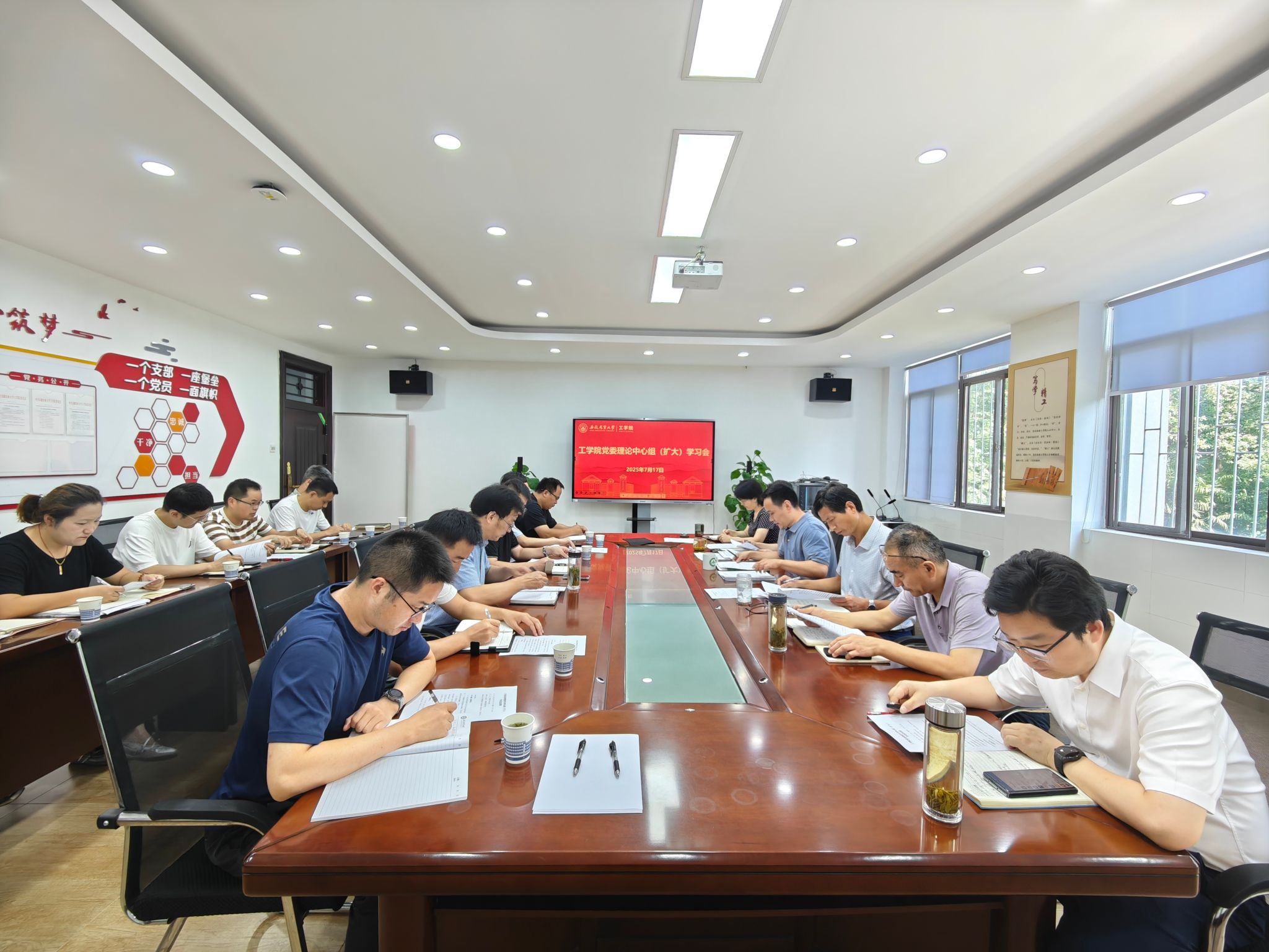 本网讯 7月17日,工学院召开党委理论学习中心组(扩大)学习暨下半年重点工作部署会,学院党委中心组成员、党支部书记、系部(中心)主任参会会议。会议由学院党委副书记张立付主持。