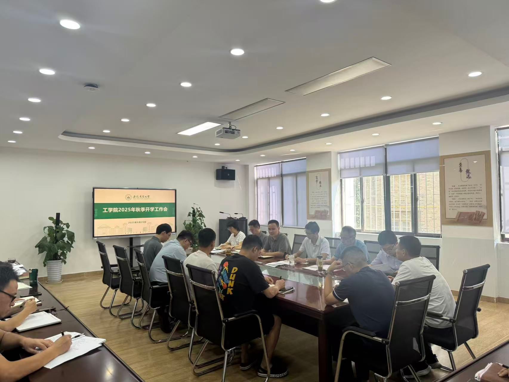 本网讯 8月28日,工学院召开2025年秋季学期开学工作会议,全面谋划部署新学期工作,确保各项工作平稳有序开展。学院党政领导班子成员、党支部书记、系(中心)主任及全体行政人员参加会议。会议由院党委副书记张立付主持。