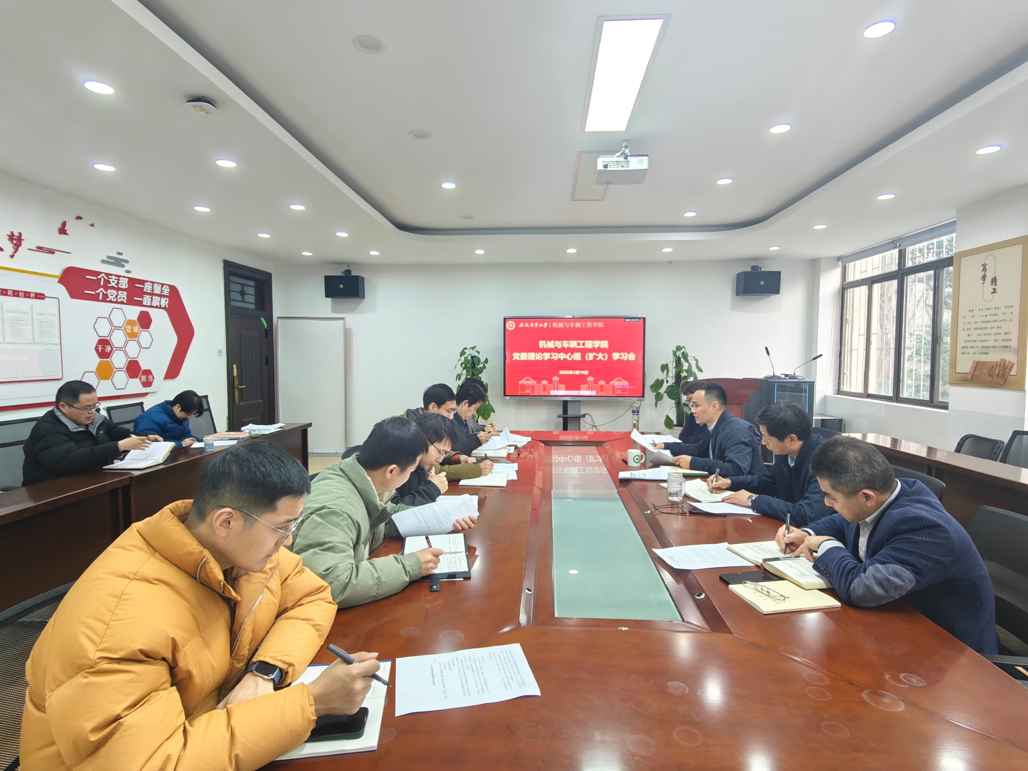 本网讯 3月19日下午,机械与车辆工程学院在229会议室召开党委理论学习中心组(扩大)学习会,学院党委中心组成员、党支部书记、系部(中心)主任参加会议。会议由学院党委书记张立付主持。