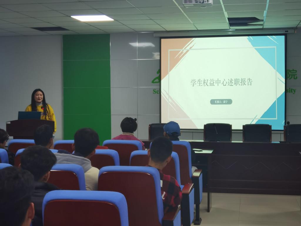 大会第二项由学生会主席胡安泰发言,总结了学生会这学期举办的活动,对于所取得的成绩给予了肯定,同时也指出了工作中的不足之处,提出了部分中心主任工作缺乏决策能力,不能自我进行决断,各中心发展不均衡,缺少凝聚力,成员积极性相差明显,工作经验不足等需要继续改进的方面。