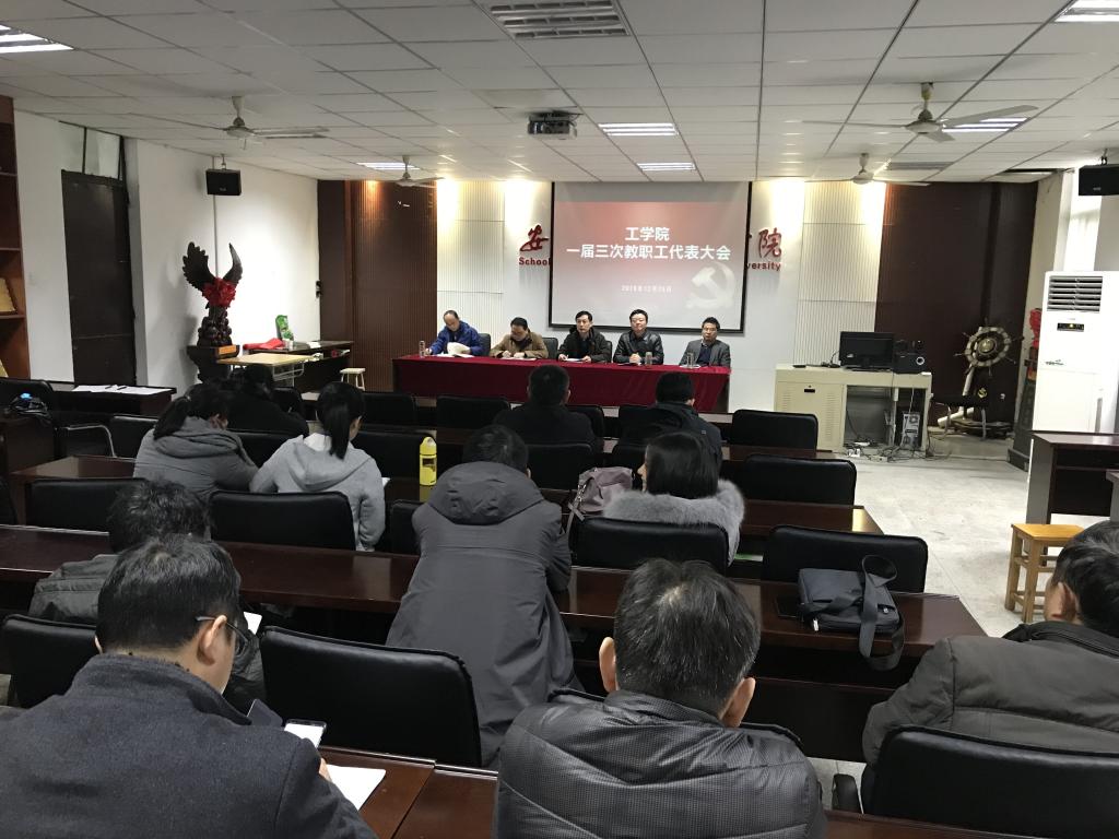 12月25日,工学院分工会一届三次教代会在三教202教室顺利召开,共有正式代表30人参加会议,因事请假4人。会议由院党委书记、分工会主席甘传鹤主持。