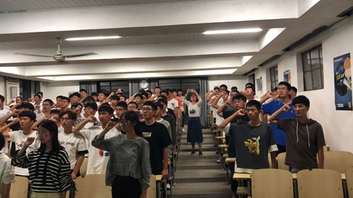 10月份,工学院各班级相继召开“弘扬爱国奋斗精神,青春建功新时代”主题班会。同学们集思广益精心准备,以各种形式展开学习。17车辆同学先学习了党史知识,就如何将个人梦融入中国梦、未来在岗位上不忘初心干实事展开了讨论;18农机采用线上和线下两种形式相结合开展:通过在qq空间举办“我给祖国比个心”摄影活动为祖国送上自己的祝福,组织同学观看电影《百团大战》并畅抒感受;19机械123班采取观影、演讲朗诵、爱国知识趣味问答、宣誓以及为祖国签名送祝福等多个环节展示改革开放40年来祖国的伟大变革,激励和引领班级成员弘扬爱国奋斗精神,积极投身建设中国特色社会主义事业的伟大实践中去。
