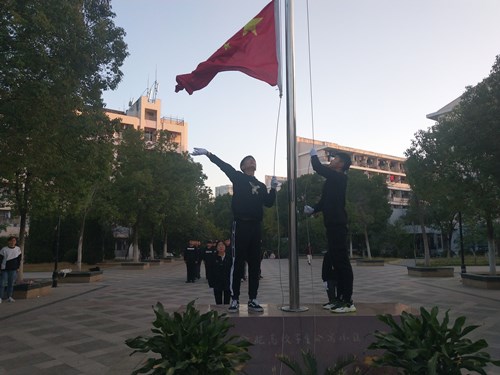 为庆祝中华人民共和国成立70周年,弘扬学生爱国主义和民族主义精神,自10月21日起,工学院依托学生公寓党员工作站,组织2019级新生各专业班级学生每周一清晨在大学生公寓广场举行升旗仪式活动,至今已举办4期。