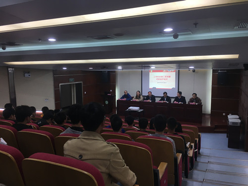工学院党委副书记、副院长孙福介绍了首届“工匠班”的成立背景、遴选情况、管理办法;教务处副处长李玮、学生处副处长刘柳分别代表校直相关部门致辞,希望工学院以“工匠班”为抓手,进一步激发学生创新意识、训练学生创新思维、提高学生创新能力,探索实践育人、创新育人、组织育人的有效路径;工学院院长曹成茂寄语首届“工匠班”同学深刻理解“工匠精神”的内涵,练就精益求精、严谨细致的优良品格,为我国从制造大国向制造强国迈进贡献自己的青春力量;首届“工匠班”学生代表张晓晴,结合自己学习科研实际作了表态发言。