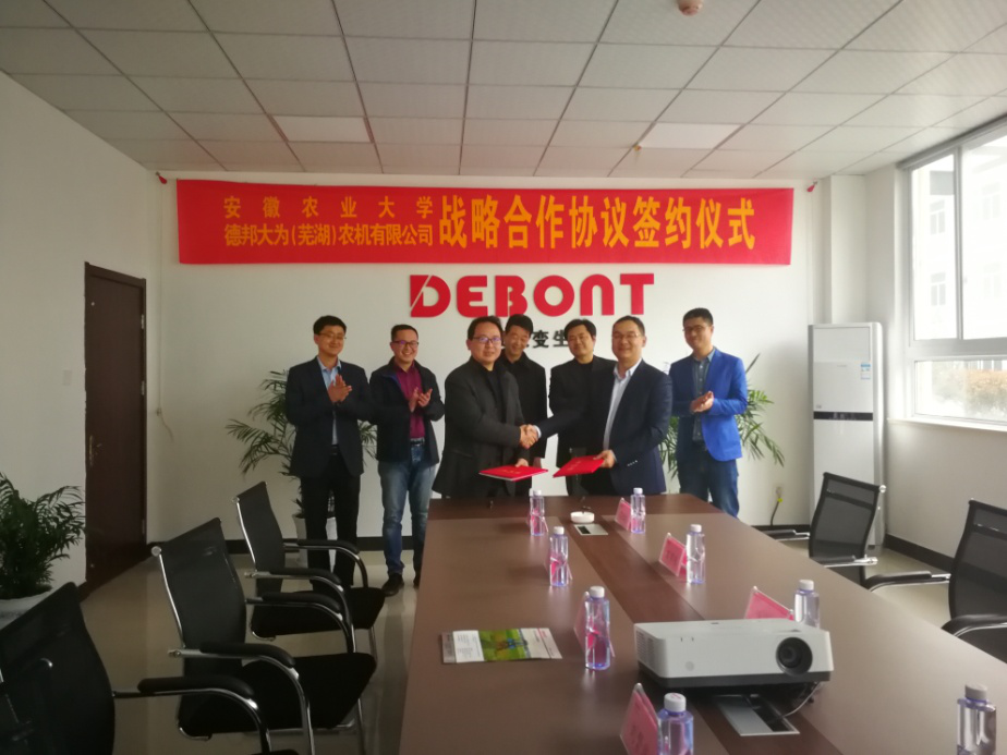 3月20日上午,安徽农业大学工学院和德邦大为(芜湖)农机有限公司产学研合作协议签约暨“产学研实践基地”揭牌仪式在芜湖市德邦大为(芜湖)农机有限公司举行。工学院陈黎卿副院长、三山区委苏明家副区长、芜湖市农机管理局潘家庐局长、德邦大为(芜湖)农机有限公司刘丹执行副总裁和农机系相关老师等出席签约暨揭牌仪式。
