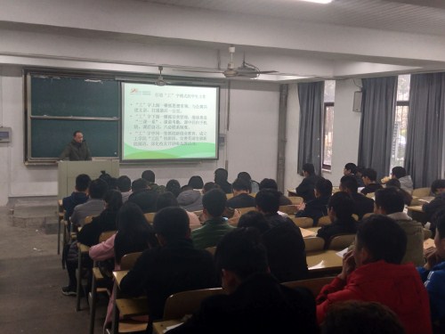 3月16日下午,工学院组织学生党员、班级班长、团支书在三教102教室集中学习全国“两会”精神。
