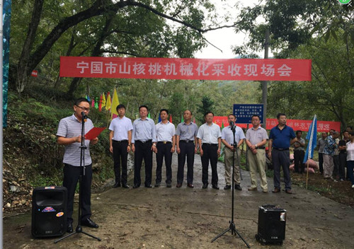 为落实宁国市“农机上山”行动计划,推进山核桃生产全程机械化,9月12日,宁国市农机局在万家乡云山村组织召开了山核桃机械化采收现场演示会。工学院院长曹成茂教授带领本院青年教师、研究生一行应邀参加,省农机试验鉴定总站副站长汪永武、宁国市农机局副局长章军等出席现场会。相关农机生产企业负责人、山核桃采摘机生产企业技术人员、山核桃种植大户等100余人参加并观摩了现场演示会。