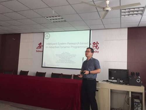 在此之前,同为南达科他州立大学电子工程与计算机系助理教授的倪振博士访问了我校并做了题为“基于自适应动态规划的人工智能系统”的学术报告。