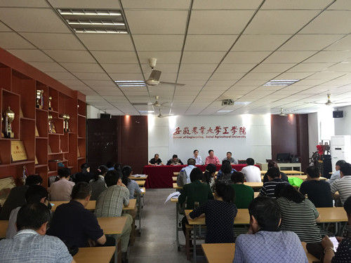 5月17日下午,工学院在三教202教室召开全院教职工大会,学习传达校党建和思想政治工作会议精神。会议由院党委书记甘传鹤主持。