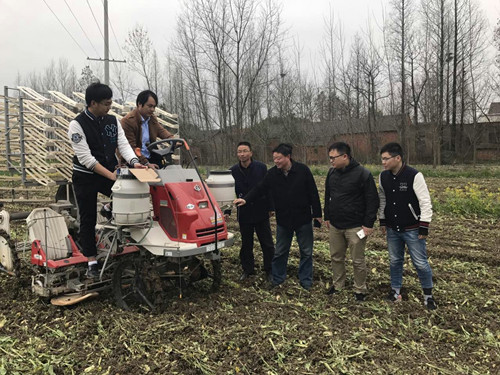 3月20日下午,工学院院长、省农机装备应用技术产业体系首席专家曹成茂教授带领工学院师生到庐江开展水稻机械化插秧智能监测系统田间试验验证工作。庐江县现代农业技术推广中心负责人到场观摩。