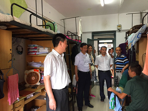 又讯 6月22日下午,工学院党政领导甘传鹤、曹成茂、姚兴贵、孙福及毕业班辅导员老师深入毕业生宿舍,看望毕业生,关心他们的就业情况,了解毕业生派遣后的最新动向,检查毕业生文明离校情况,要求毕业生党员、学生干部站好最后一班岗,为同学们安全文明离校做好服务。