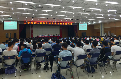 6月24日下午,工学院2016届学生毕业教育暨派遣大会在欣苑食堂四楼报告厅召开。学院党政领导姚兴贵、陈黎卿、孙福及毕业班辅导员出席会议,学院2016届全体毕业生参加会议。会议由学院党委副书记孙福主持。