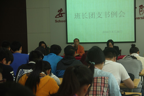 最后,孙副书记强调召开本次会议的重要意义,强调了“三风建设”的重要性,他指出,今年是学校的班风建设年,班风建设关乎学生的成长成才,关乎人才培养的质量,各班级主要学生干部务必要严格执行学校、学院校院的各项工作,率先示范,以自身良好实际行动带动班级班风建设。