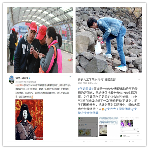 线下主题教育活动开展地如火如荼,线上活动也积极配合响应。3月5日-3月28日,工学院团委充分发挥新媒体的阵地育人作用,发起了线上活动,分别设计了“走近雷锋”-介绍雷锋生平事迹、“学识雷锋”-寻找社会上奉献和服务而感动、温暖他人的先进典型及自己亲身经历过的好人好事、“我行雷锋”-各团支部主题团日活动展播三个阶段,引发同学们在新媒体平台展开广泛的学习及讨论,通过多个层面、不同视角解读“雷锋精神”的深刻内涵,引导学院学子将“雷锋精神”内化为自己的实践行动,将“雷锋精神”发扬光大。